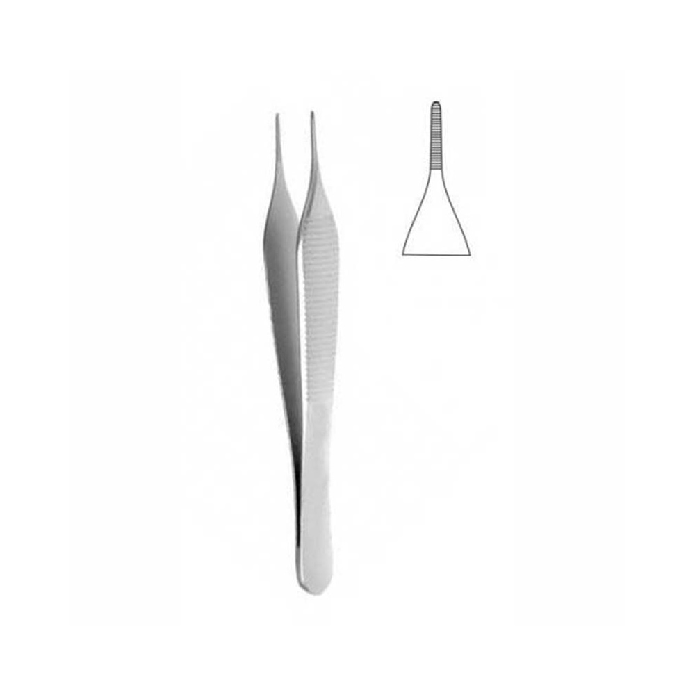 ﷼. 42.00 ﷼. 42.00 ﷼. 42.00 Tissue Plier Adson 15.0cm is a precision instrument designed for delicate tissue handling in surgical and dental procedures. Featuring fine, serrated tips with a 1.0mm size for a secure grip and enhanced control, it is made from high-quality stainless steel for durability and easy sterilization.