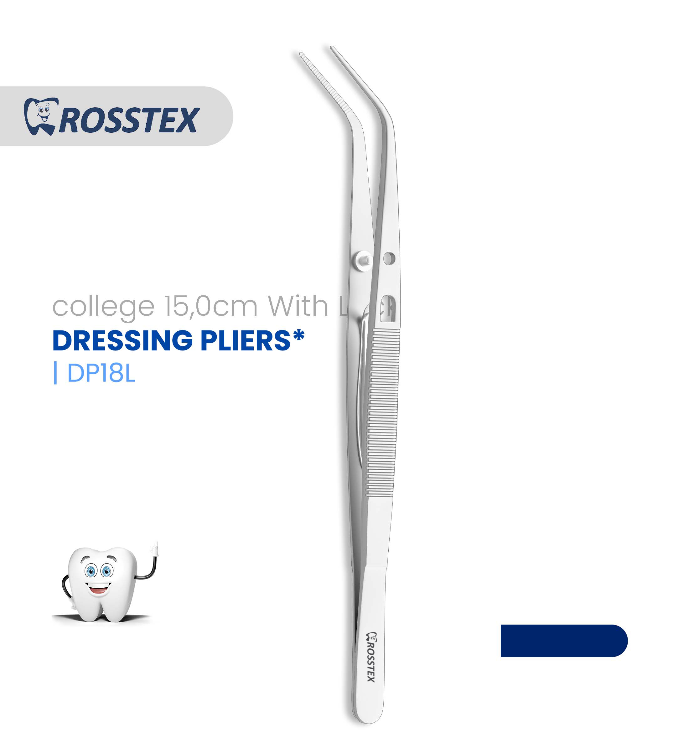 DP318L College Locking Dressing Plier is a precision instrument crafted for securely handling gauze, cotton rolls, and other dressing materials during dental procedures. With a built-in locking mechanism, it provides a stable grip, ensuring materials are held firmly in place.