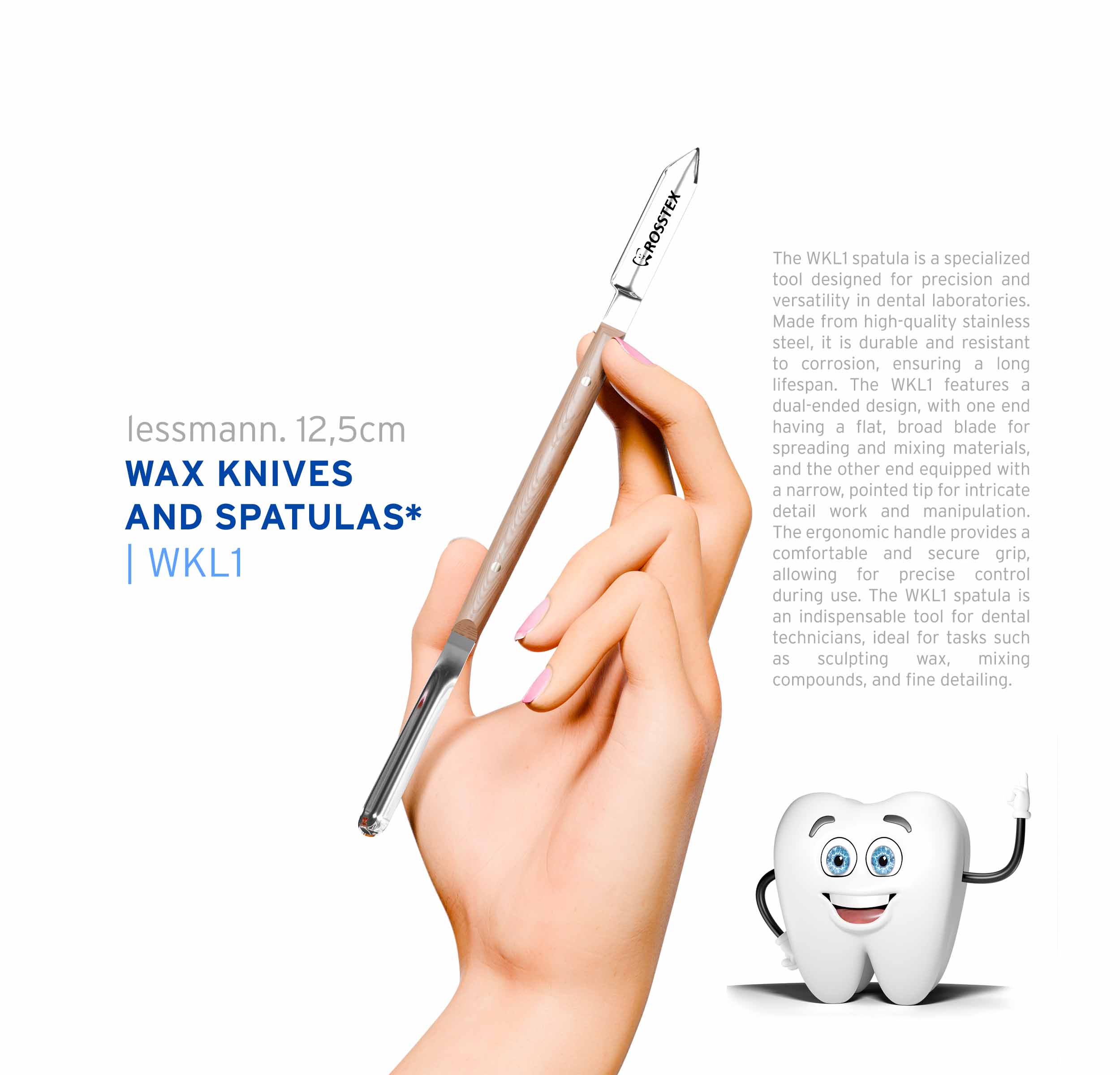 ﷼. 15.00 ﷼. 15.00 ﷼. 15.00 Lessmann Wax Knife 12.5cm WKL1 is a high-quality dental instrument ideal for carving, shaping, and trimming wax during laboratory procedures. Featuring a sharp stainless steel blade, it ensures precise manipulation of wax patterns. Durable, autoclavable, and ergonomically designed for comfort and control in detailed work.