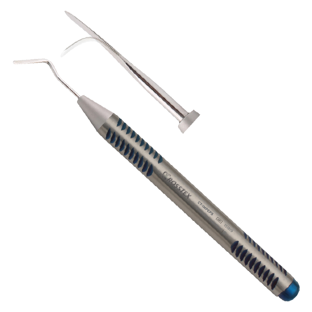 Periotome IMPPT5 features a 2.0 mm angled, flexible blade designed for atraumatic tooth extraction. The angled tip allows enhanced access and precise periodontal ligament separation in hard-to-reach areas while preserving bone integrity.