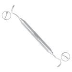 Sinus Lift Instrument Curette IMPSC2 is used during sinus lift procedures to separate and reflect the Schneiderian membrane from the maxillary bone and to elevate the membrane. It features dual tips of 2.8 mm and 5.0 mm for precise, atraumatic manipulation.