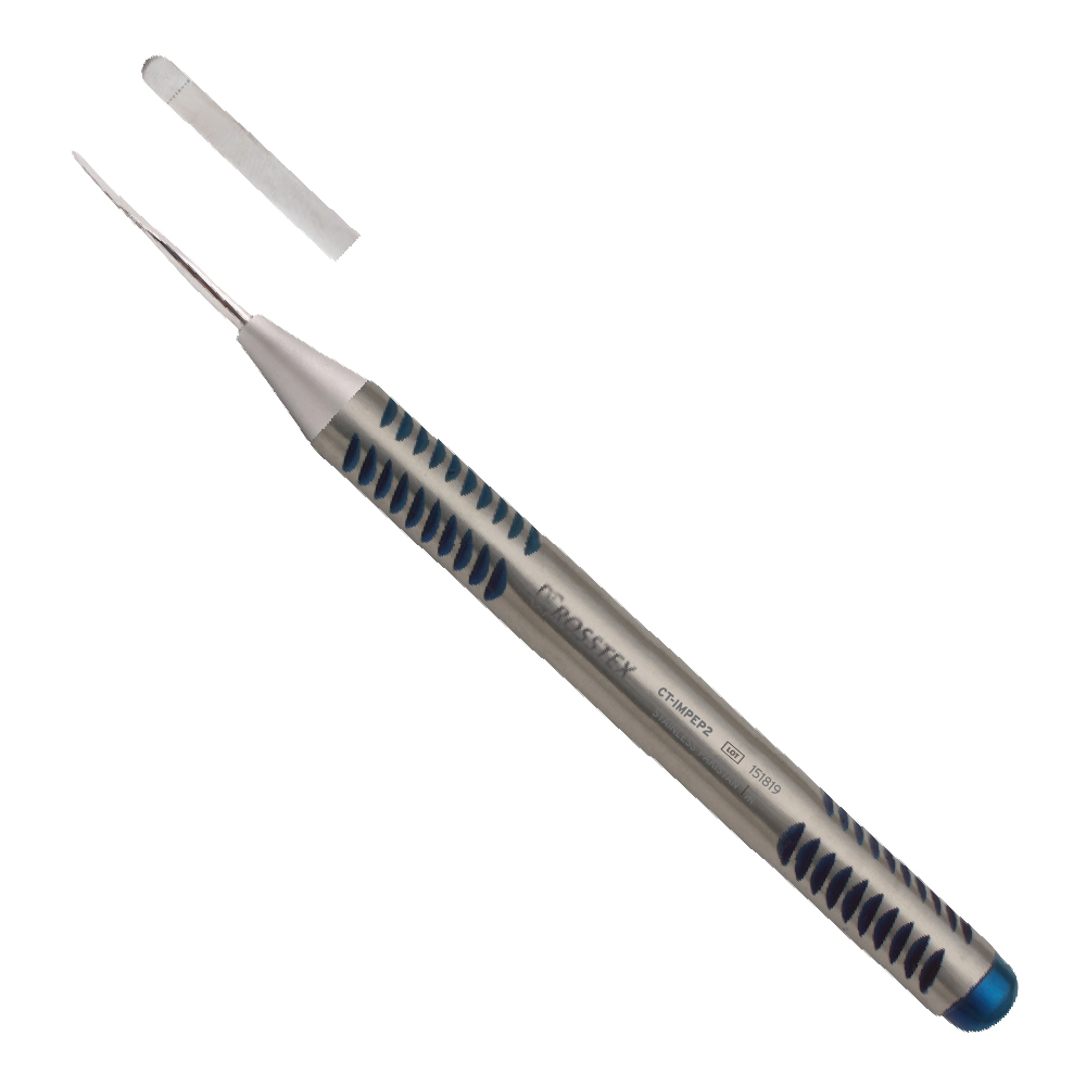 ﷼. 130.00 ﷼. 130.00 ﷼. 130.00 Periotome IMPPT2 features a 3.0 mm straight, flexible blade designed for atraumatic tooth extraction. Its broader, flexible tip allows controlled severing of the periodontal ligament while preserving bone integrity, especially in wider root surfaces.