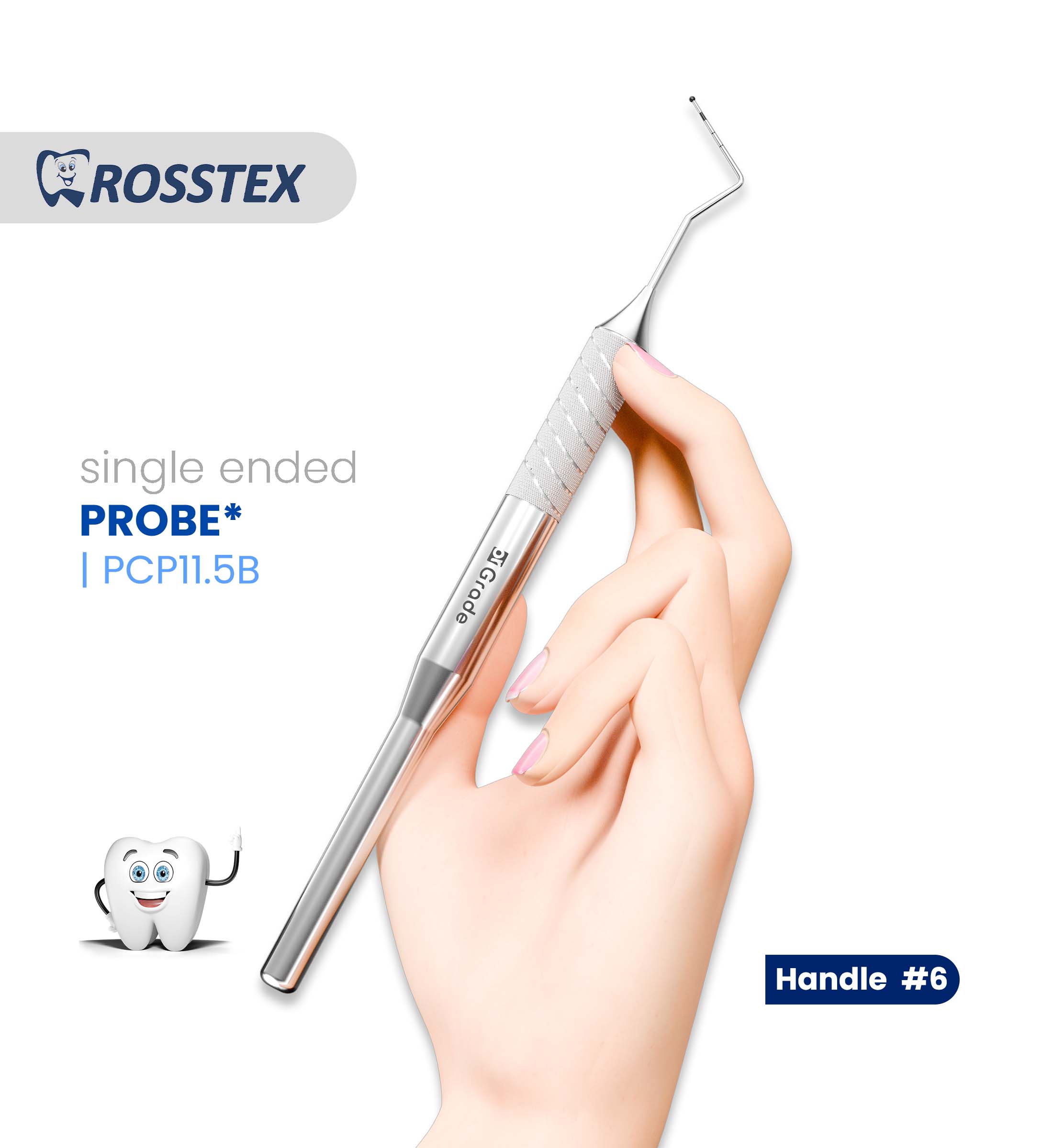 ﷼. 45.00 ﷼. 45.00 ﷼. 45.00 PCP11.5B Periodontal Probe is a specialized dental instrument designed for precise measurement of periodontal pocket depths, with clear markings up to 11.5 mm. This probe is essential for accurate periodontal assessment, enabling detection and monitoring of gum health and periodontal disease.