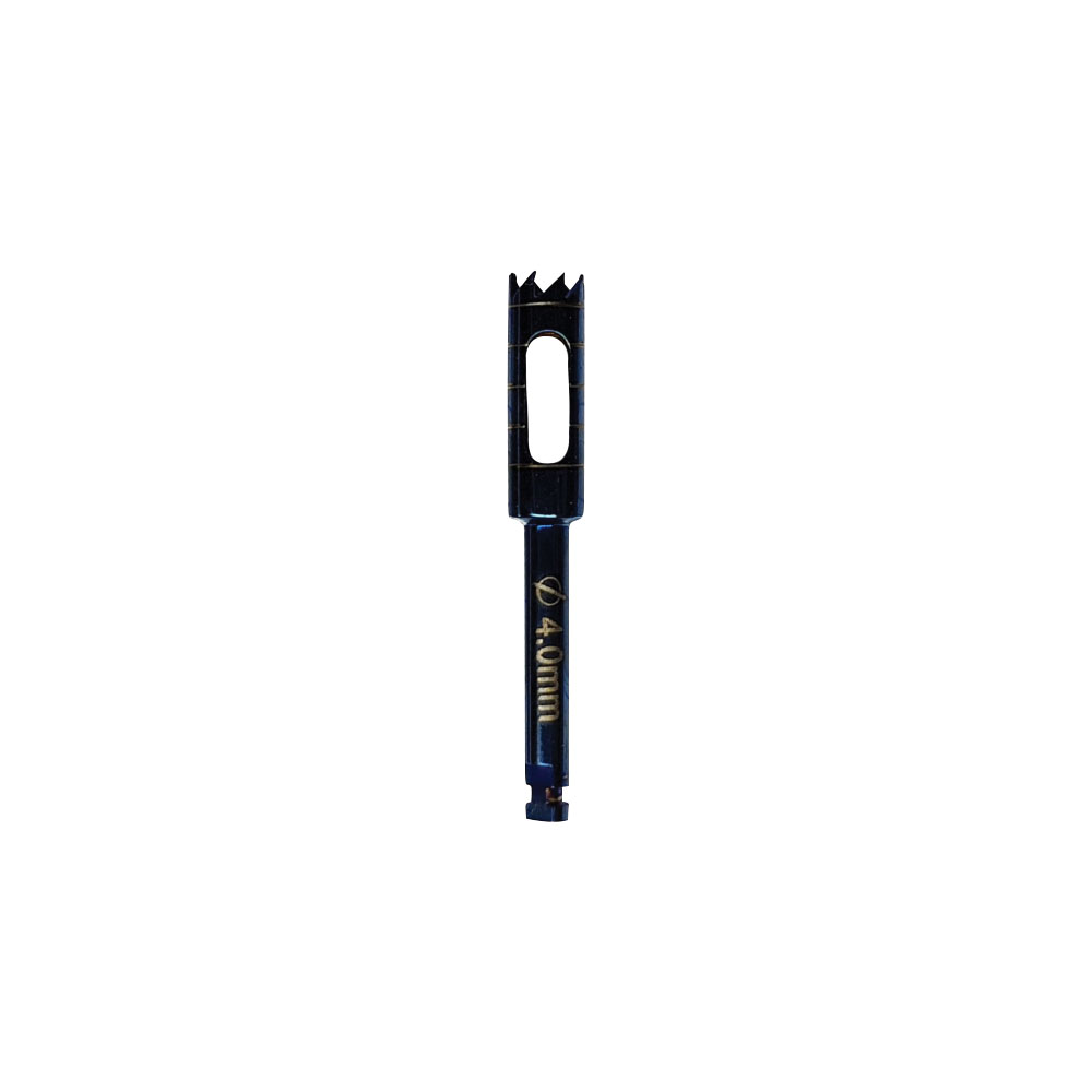 ﷼. 120.00 ﷼. 120.00 ﷼. 120.00 Trephine Drill 4.0 mm is a surgical tool designed for harvesting bone or removing implants, featuring a hollow, cylindrical cutting edge for precise, controlled cutting during oral and maxillofacial procedures.
